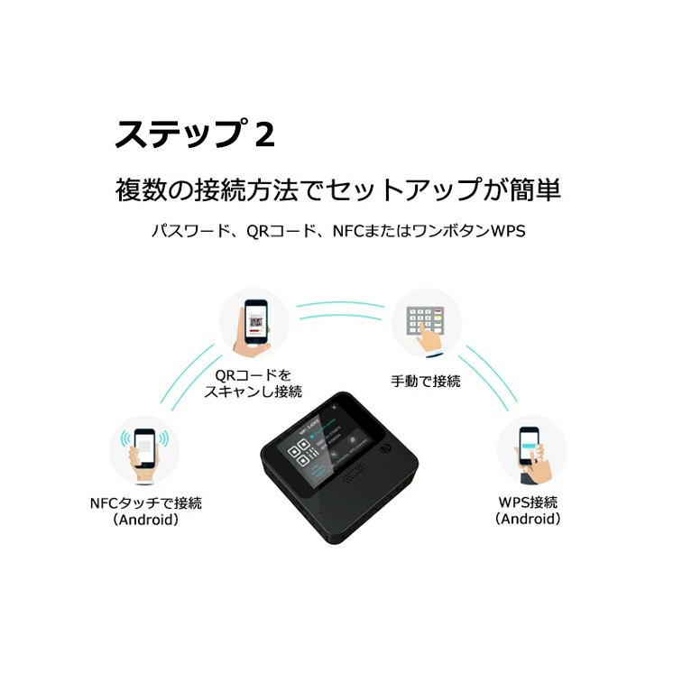 パスワード、QRコード、NFCまたはワンボタンWPS