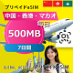 中国・香港・マカオ 500MB / 毎日 7日間