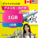 アメリカ・カナダ eSIM 1GB 1日間