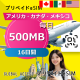 アメリカ・カナダ・メキシコ eSIM 500MB 毎日 16日間