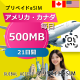 アメリカ・カナダ eSIM 500MB 毎日 21日間