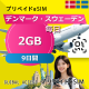 デンマーク・スウェーデン 2GB 毎日 9日間