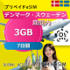 デンマーク・スウェーデン 3GB 7日間