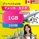 アメリカ・カナダ eSIM 1GB 25日間