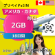 アメリカ・カナダ eSIM 2GB 毎日 18日間