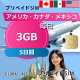 アメリカ・カナダ・メキシコ SIMカード 3GB 毎日	 5日間