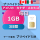 アメリカ・カナダ・メキシコ 1GB / 毎日 3日間