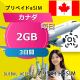 カナダ 2GB 毎日 3日間