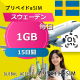 スウェーデン eSIM 1GB 毎日 15日間