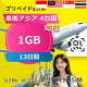 東南アジア 4カ国 eSIM 1GB 毎日 13日間
