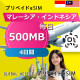 マレーシア・インドネシア 500MB 毎日 4日間
