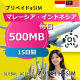 マレーシア・インドネシア 500MB 毎日 15日間