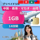中国・香港・マカオ・台湾 SIMカード 1GB 毎日 14日間